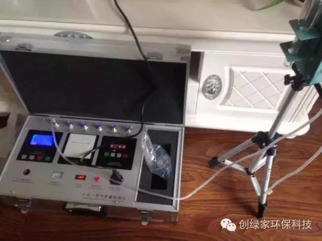 吶,就是這個機器,可以檢測出甲醛等其他四種有害物質,很專業有木有?!