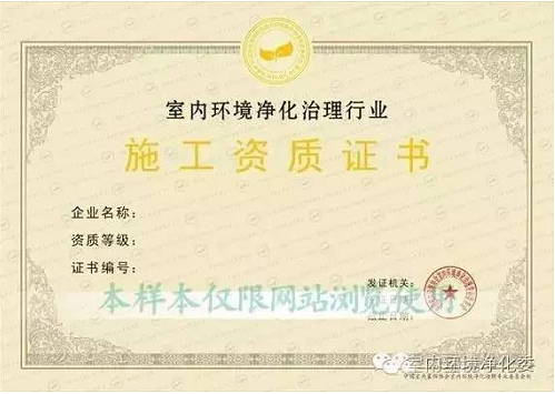 提供室內環境治理服務的公司需要具有施工資質。國內承擔室內環境凈化治理工程的企業按其注冊資本,管理和技術人員狀況,以及凈化治理工程業績等條件申請相應資質等級,分為甲、乙、丙三級。資質由中國室內裝飾協會室內環境凈化治理專業委員會全國統一頒發。